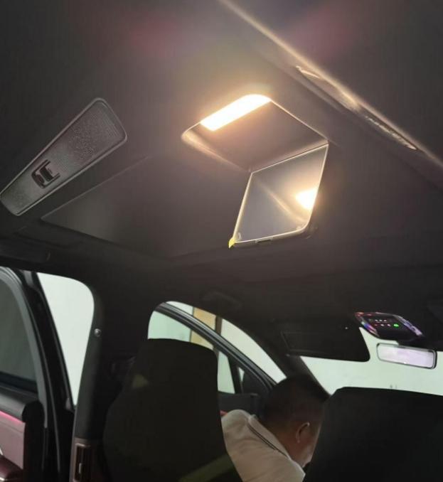 结合此前曝光的谍照,新车还将配备较大尺寸的化妆镜和吸顶娱乐屏幕,并配有可点亮的化妆灯。B柱上设计有空调出风口,二排车顶位置配备了中置扬声器,中间还设有后排摄像头。